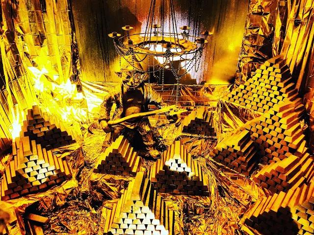 Nasz kolejny 'przystanek' - Sztolnia Orchowa, jak się okazało, to stosunkowo nowa atrakcja. Według informacji na stronie to dokładnie 22 kwietnia 2017 Złoty Stok udostępnił ją do zwiedzania. Same prace związane z przygotowaniem tej trasy rozpoczęły się w 2013 roku. Sztolnia jest zlokalizowana po przekątnej / naprzeciw ŚPT / po drugiej stronie ulicy / idąc w kierunku Kopalni Złota - po lewej stronie. Na placu przy wejściu do sztolni jest namiot, w którym obsługa rejestruje nas do wycieczki z przewodnikiem. Jest więc czas aby chwilę odpocząć i założyć przygotowane kaski oraz gumowce. Polecam skorzystać z obuwia, gdyż w środku jest dosyć wilgotno i są kałuże. Co ważne - temperatura w takich miejscach jest niska, więc należy zaopatrzyć się w swetry/kurtki. Sam spacer jest stosunkowo krótki, więc nie mam zamiaru pisać więcej niż tylko to, że nazwa sztolni wywodzi się od koloru ścian i stropów. Resztę opowie Wam przewodnik. Na pewno jest to ciekawe uzupełnienie całej wycieczki.